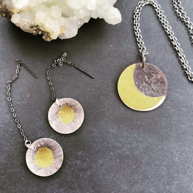 Designer Kimberly takes inspiration from nature, ancient artifacts, mythology and astronomy. The use of various materials allows her to offer items in multiple price points and explore multiple techniques and styles, with the goal of providing collections that can be added to over the years, reflecting the wearer’s personal style.